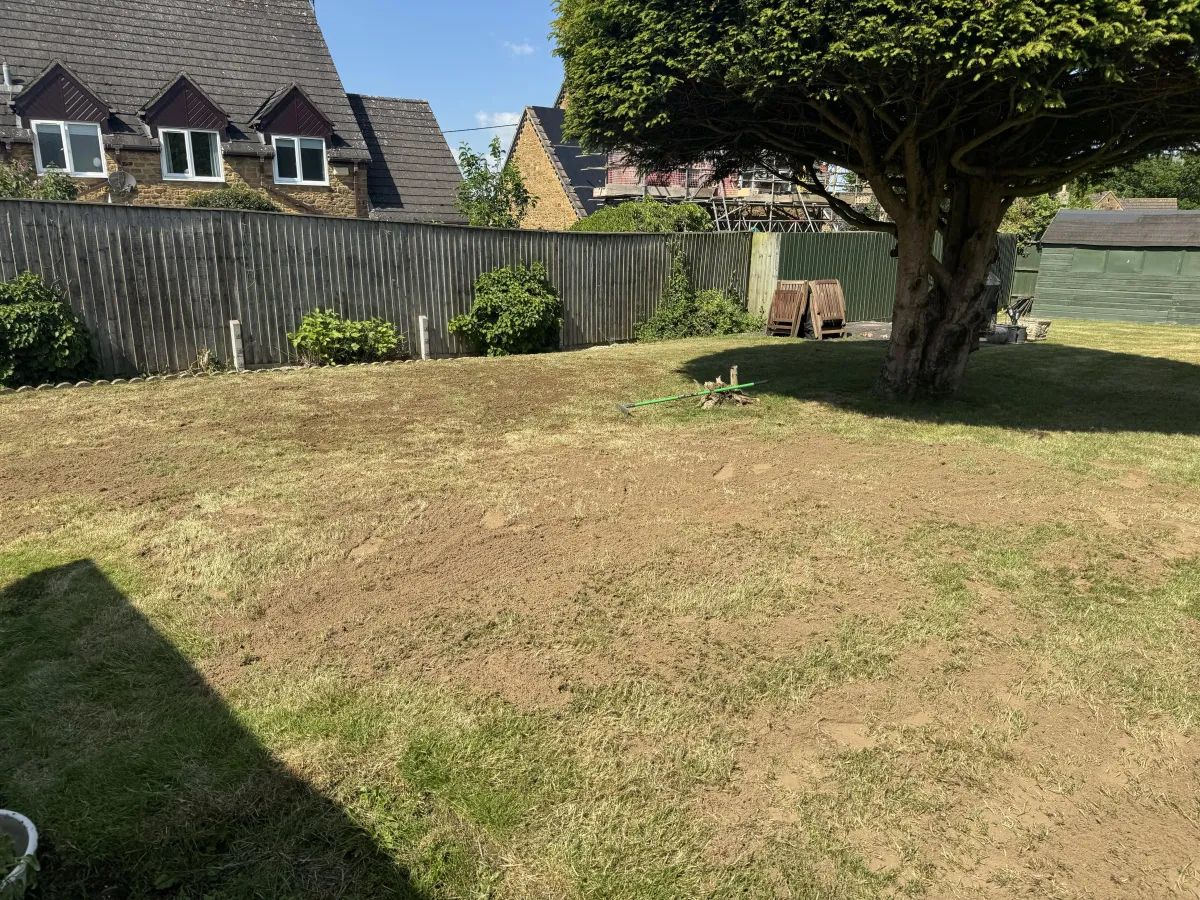 Work in progress for the really good lawn. After cutting, scalping, then scrarified we then did hollow timing to make the perfect base for top dressing shown here .